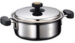 魔法瓶や炊飯ジャーなど高品質な製品づくりで有名な象印が開発した、IH(電磁)調理器に適した片手鍋。ステンレス銅・アルミニウム・アルミニウム合金を使った「前面5層構造」により、アルミニウムの特性である熱伝導率の高さと、ステンレスの保温性・耐久性を兼ね備えた省エネに優れた鍋となっている。