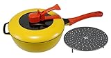 一家に一つ、便利なキッチンアイテム . とても便利なキッチンアイテムです。普通のフライパンのような使用方法だけでなく、蒸す・ゆでる・揚げることが出来ます。高密度3層ふっ素樹脂コーティングなので、油を使わなくても焦げ付くことなく平気でした。そこも魅力です。オレンジとイエローの色合いで我が家のキッチンを明るくしています。