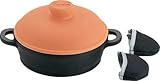 本キャセロールは浅型なので、魚や鳥の蒸し焼きを作るのにピッタリ。ブラックの金属ボディに温かな風合いのテラコッタが映える美しいフォルムを持つキャセロールなので、蓋をしたまま直接テーブルにセットしてもカッコイイ。蓋を開けた瞬間に熱々の料理が現れるという演出にもピッタリ。丈夫で熱伝導性の高いボディ部は、ガス・ハロゲン・オーブンなど複数の熱源にも対応しているのがうれしい。(三井貴美子)